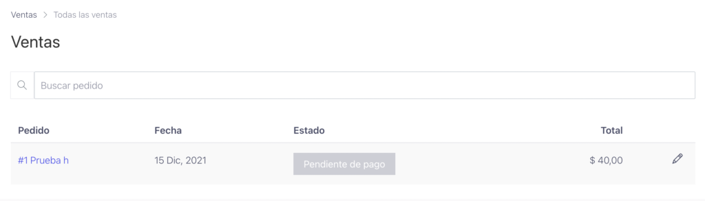 Allí podrás ver todas tus ventas y al principio las más actuales. Puedes buscar también el pedido o la venta que desees por nombre, tienes un buscador a mano.